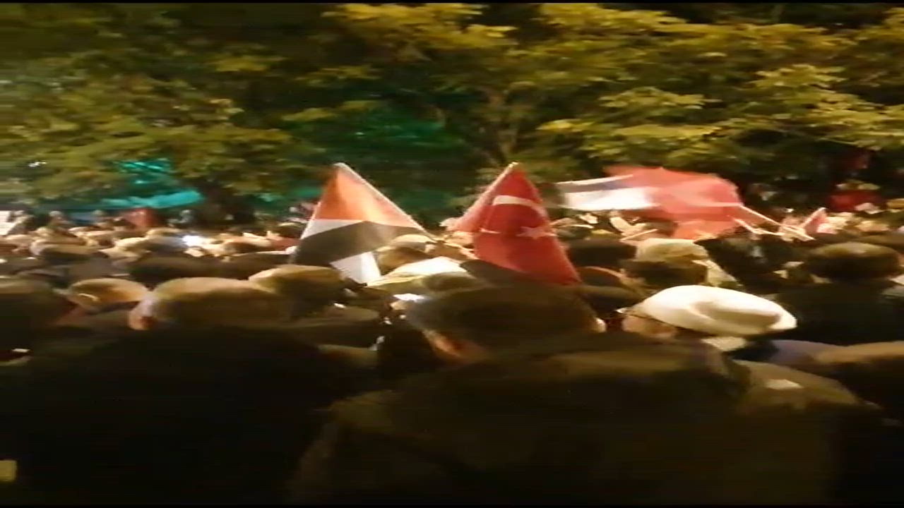 An angry crowd gathers outside the Israeli Embassy in Ankara.