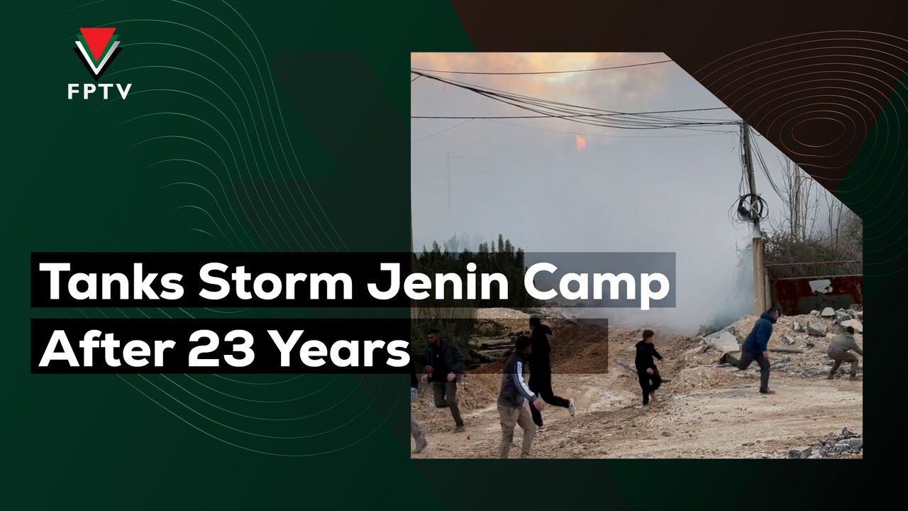 For the first time since 2002, occupation forces' tanks have invaded Jenin Refugee Camp, marking a shocking and unprecedented escalation. Tanks are now advancing through the northern entrance, aiming their artillery at citizens and journalists. Residents have begun approaching the tanks, as tension and uncertainty fill the streets. This unfolding scene is unlike anything witnessed in Jenin in over two decades.