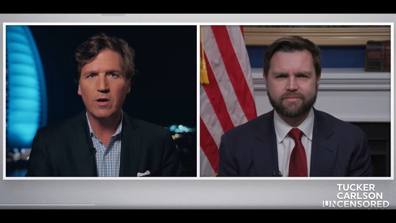 Senator J.D. Vance (R-OH) joined Tucker Carlson for his video. During their discussion Senator Vance argued that bill handcuffs President Trump and and funds the lost war in Ukraine in 2025 and 2026.