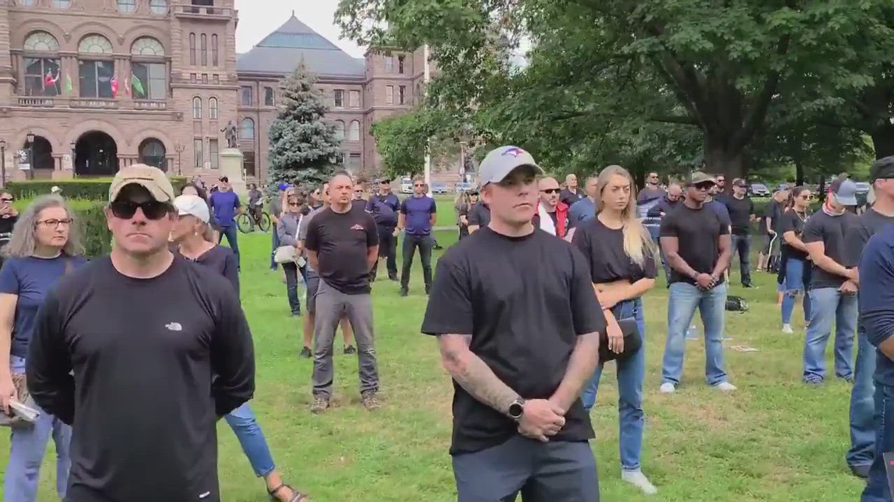 Police officers, firefighters, paramedics joined Toronto Canada protest against the mandatory vaccination