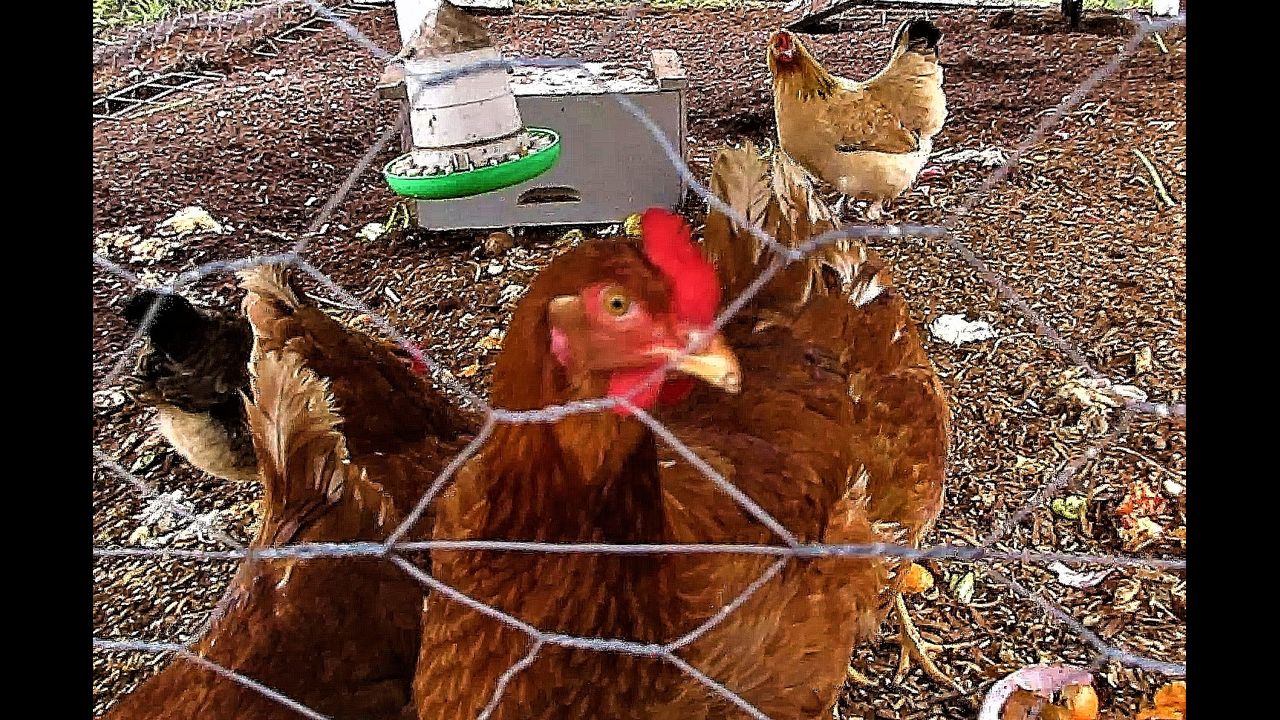 P.4b Six days in Balingup: Chook business – dying chook, grain feeder top-up, Big Evil onto backyard chooks MVI_3089