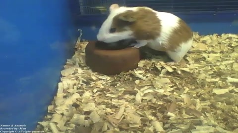 Cute white and brown guinea pig drinking water, seems to be very thirsty [Nature & Animals]