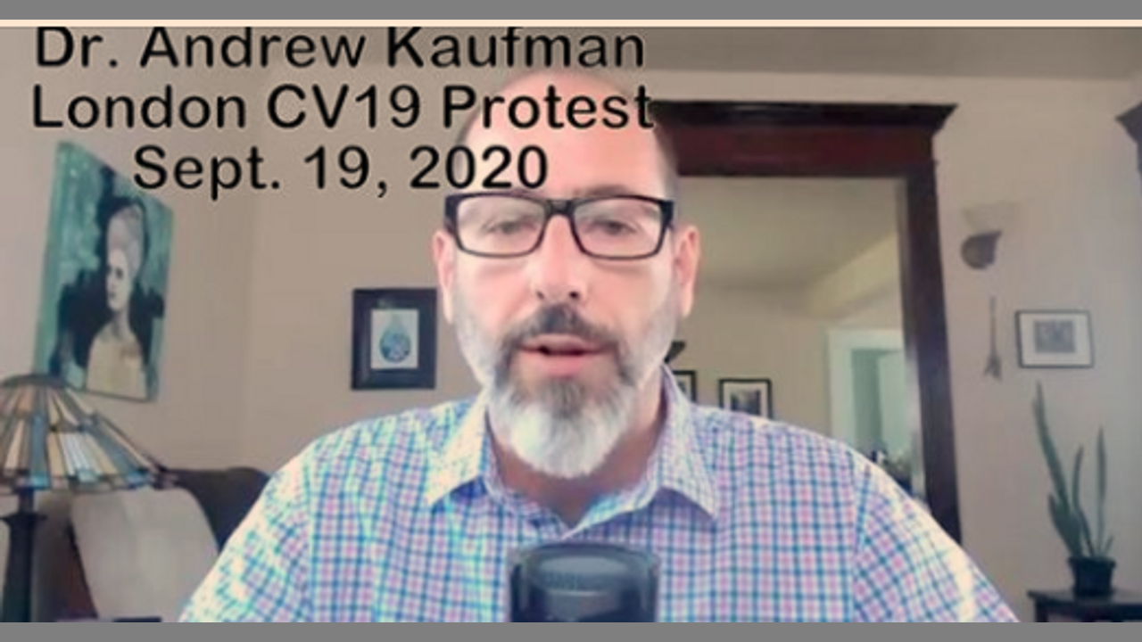 The brilliant Dr. Andrew Kaufman speaks via huge video screen to the crowd at London's Trafalgar Square, September 19, 2020. The event was organized to protest the tyranny descending upon us under the pretext of protecting people from disease.