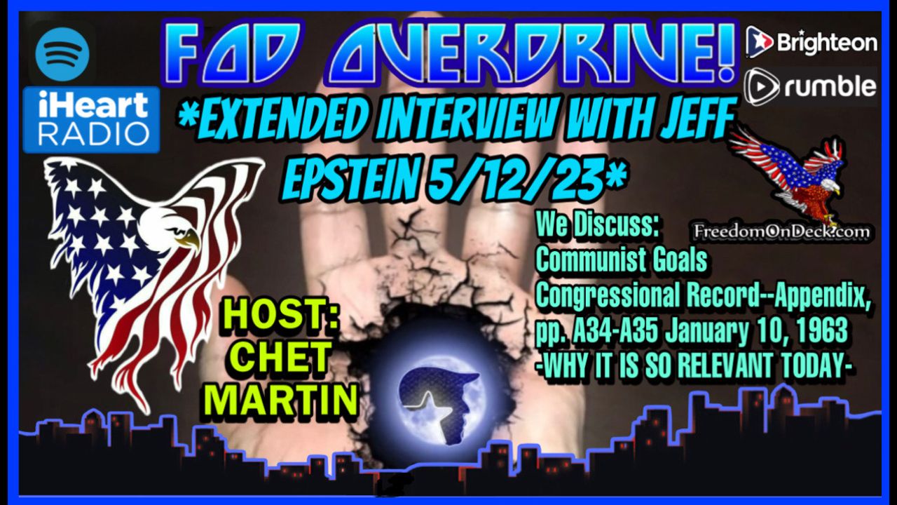 On this Freedom on Deck “OVERDRIVE” internet short, Chet interviews with Jeff Epstein – the full version. Jeff lists all the communist tactics at play in our country right now.