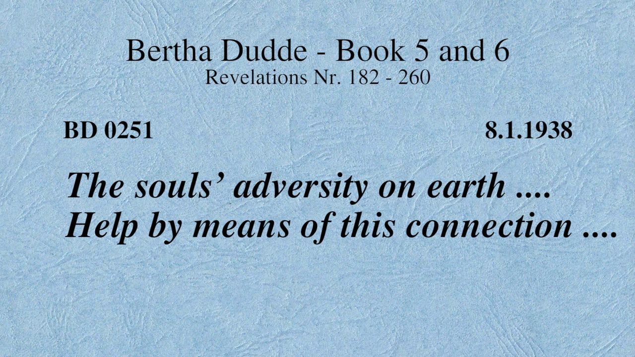 BD 0251 - THE SOULS' ADVERSITY ON EARTH .... HELP BY MEANS OF THIS CONNECTION ....