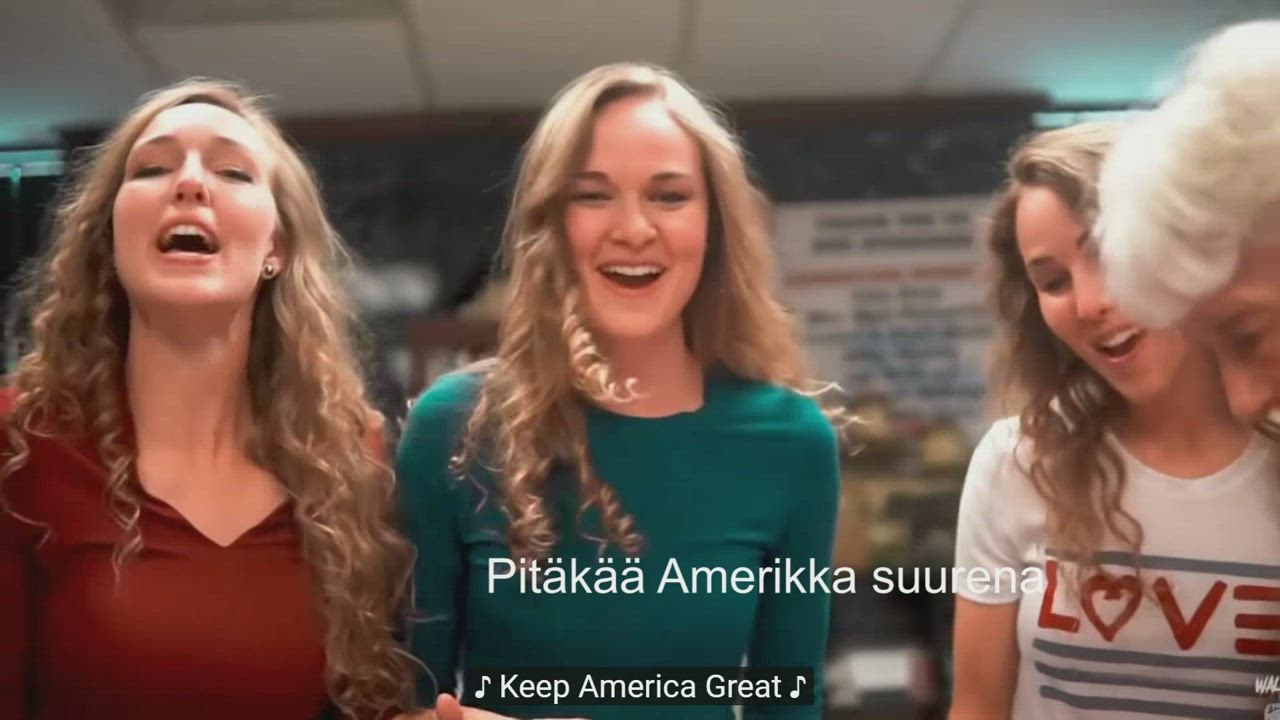 KEEP AMERICA GREAT Finnish text suomeksi Trump Song by Camille & Haley