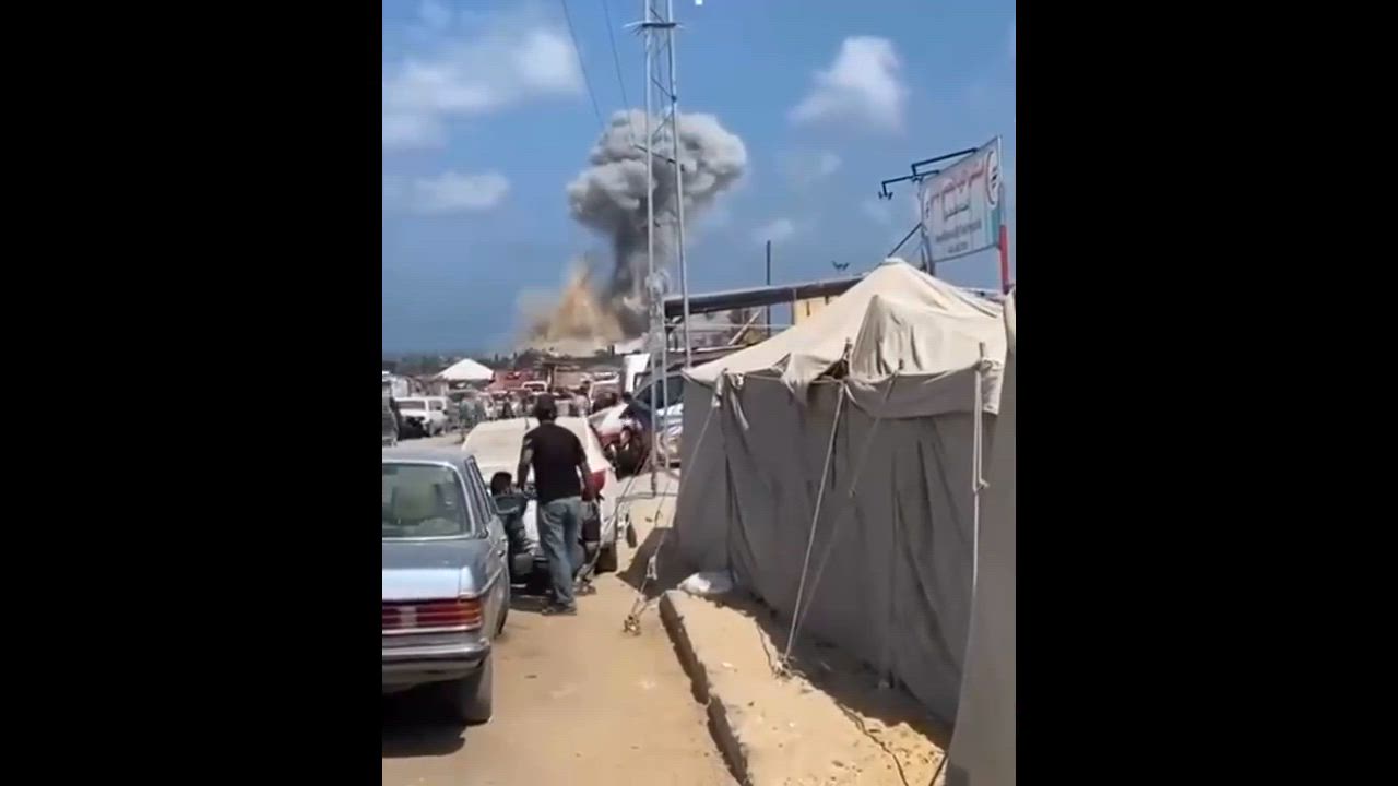 The moment of Israeli airstrikes on Khan Yunis in the Gaza Strip today.