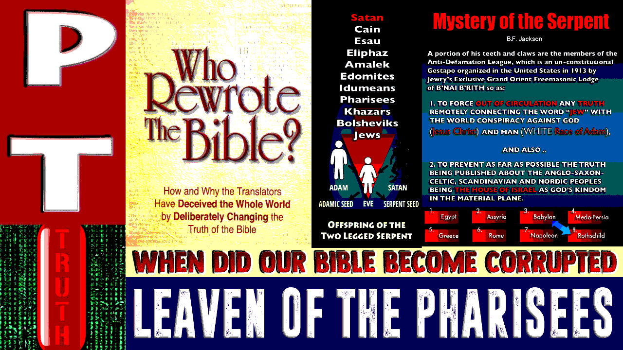 PT: Who Rewrote Our Bible? - Leaven of the Pharisees, f/ PT Solo. The whole world is following the Beast primarily through a Counterfeit Gospel, a Jewish Jesus and a Dark light spirit. In this PT Solo episode we shoe the years when the poison SEED was added to our English Bibles.