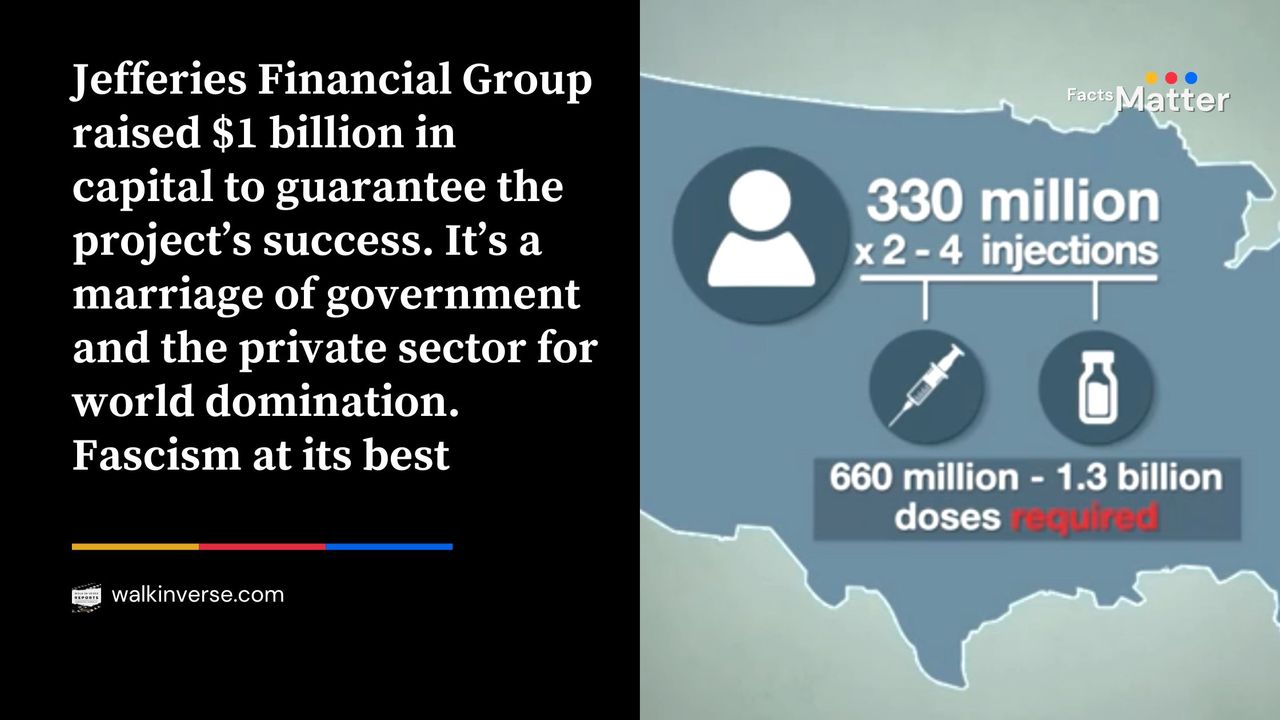 - Jefferies Financial Group raised $1 billion in capital to guarantee the project’s success. It’s a marriage of government and the private sector for world domination. Fascism at its best.