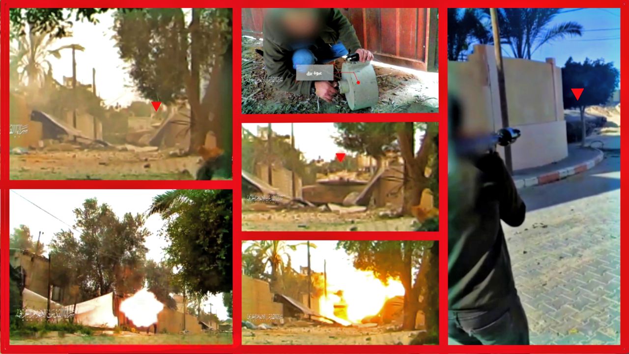 Al-Quds Brigades shows scenes of targeting a Zionist force and blowing up a tank during the fierce battles in Khan Yunis. 2024/04/09