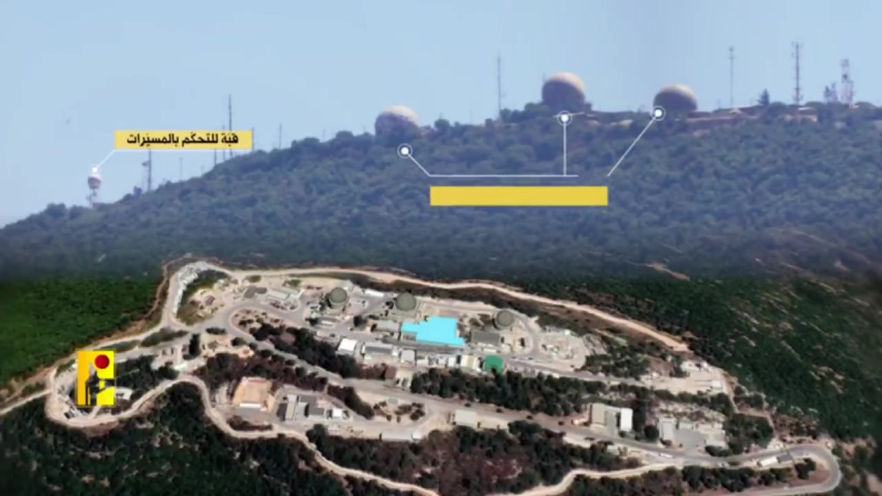 Hezbollah releases footage of a rocket attack on the Israeli Air Force's airspace control and surveillance center on Mount Meron.