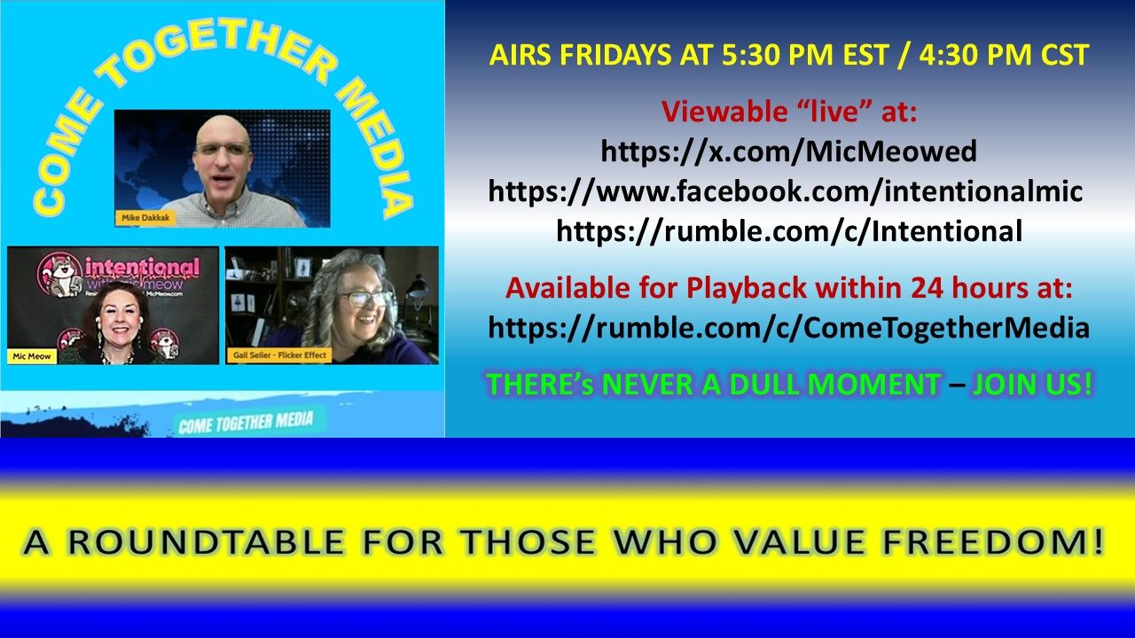 You can view our current and past 'CTM' content on our 'Intentional w/Mic Meow' Rumble channel as well as on the 'Intentional' channel on Facebook, Substack, Patreon, Brighteon (and listen to the audio on Apple Podcasts).
