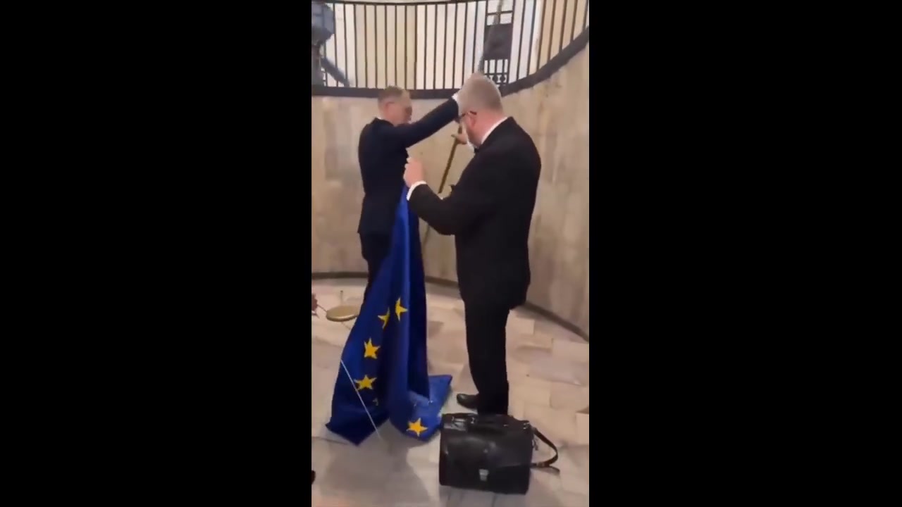 Polish prez hopeful Grzegorz Braun TEARS DOWN EU flag and WIPES SHOES with it