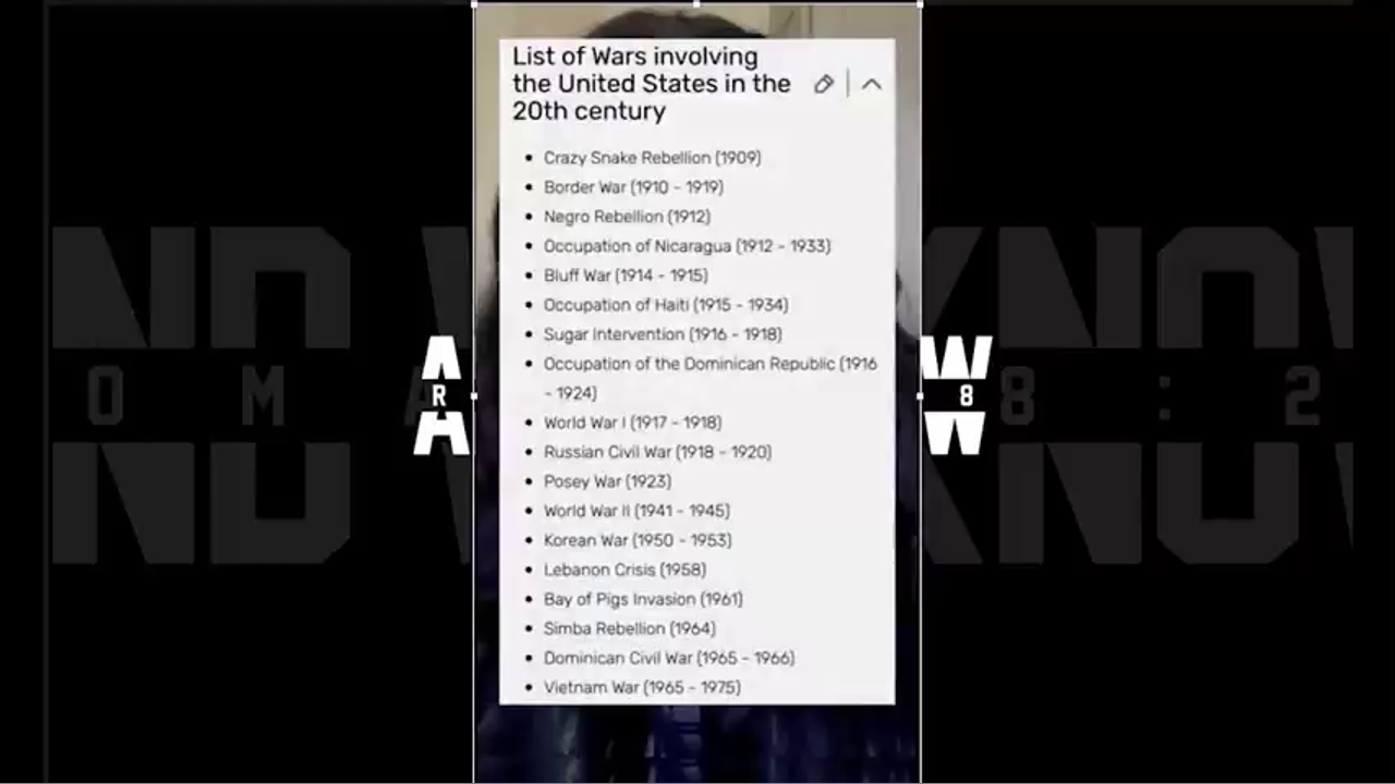 ARE YOU AWARE OF THE LONG LIST OF COUNTRIES THE US HAS INVADED IN YOUR NAME?