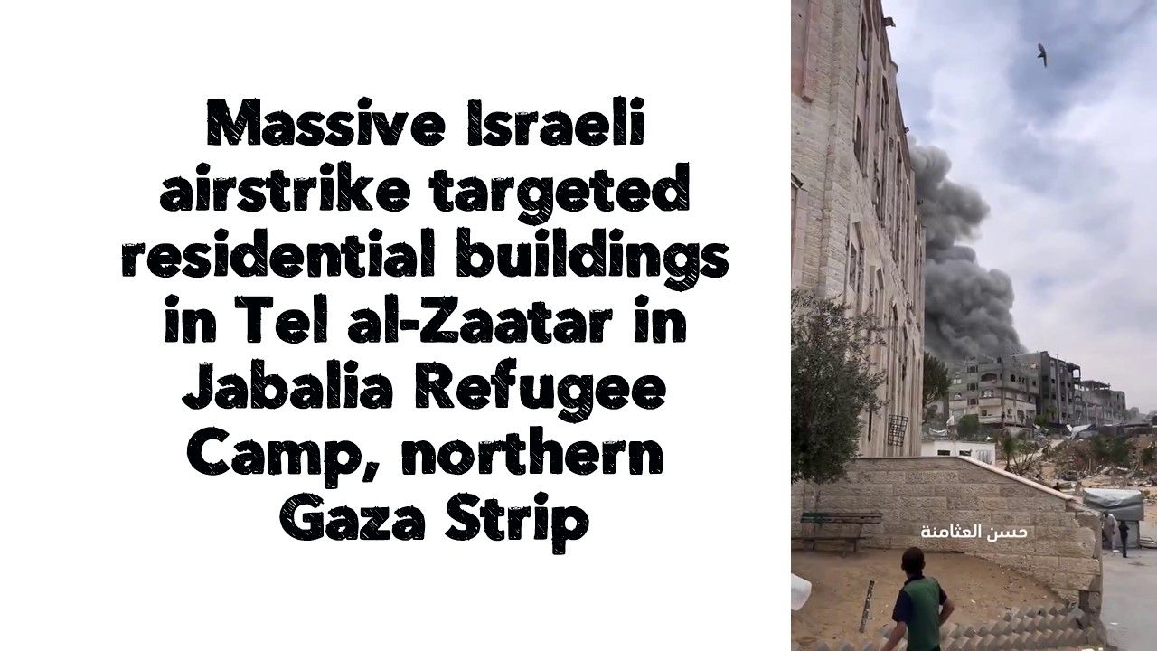Massive Israeli airstrike targeted residential buildings in Tel al-Zaatar in Jabalia Refugee Camp, northern Gaza Strip.