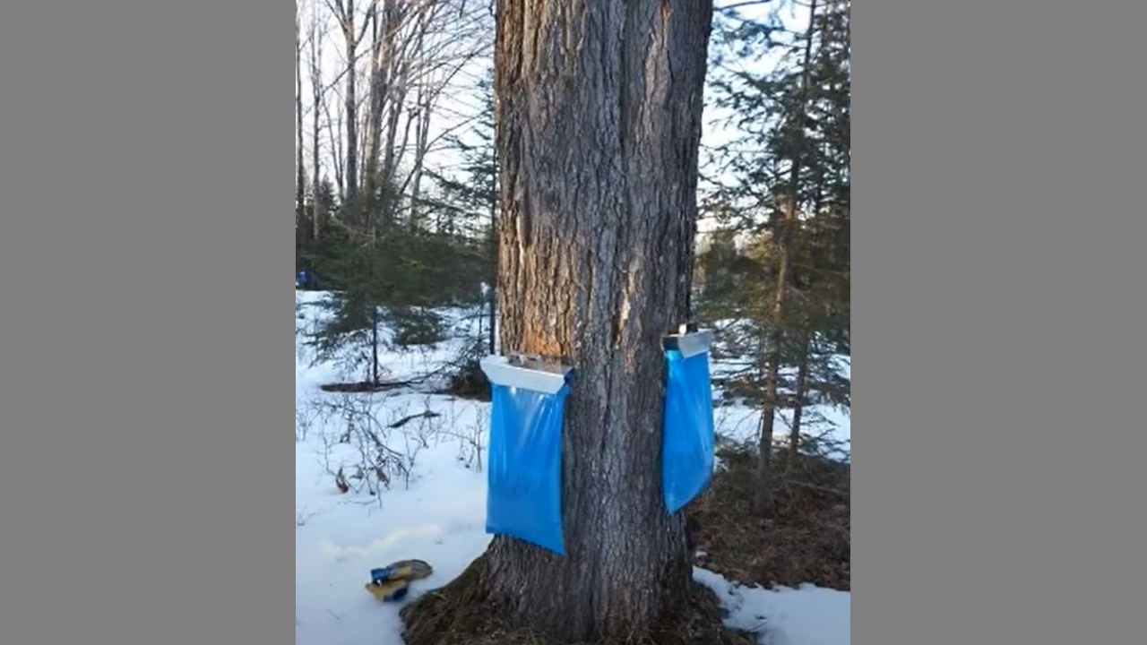 It's maple syrup time! We love the sound of sap dripping into whatever kind of container we use whether it's a bag or a bucket, it means spring is finally here and we can sit around the fire cooking it down. It takes approximately 40 gallons of sap to make 1 gallon of maple syrup.