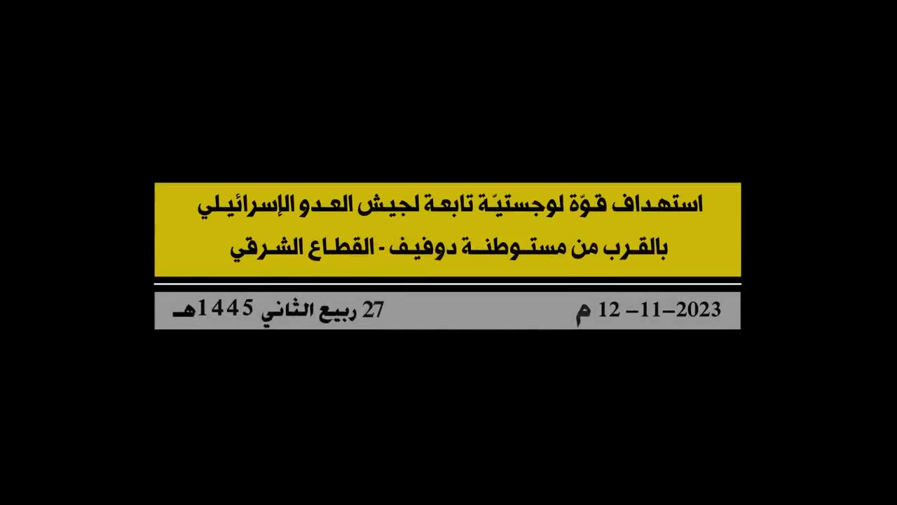 Video Scenes from the Islamic Resistance targeting a logistical force belonging to the Israeli enemy army near the “Doviv” settlement on the Lebanese-Palestinian border.