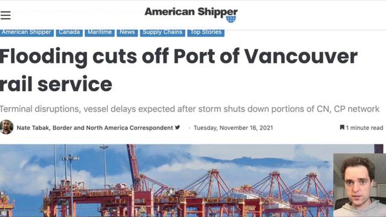 Canada's largest port by far, the port of Vancouver, has closed, as have the rails and highways connecting it to Canada, after being severely damaged in the flooding in an "atmospheric river" event. The deep water port is responsible for 1/3 of Canadian imports and exports, meaning the grains that the world so badly needs from Canada are not able to get out. And the overflow of goods from other congested North American ports are now wholly unable to get in. Christian explains why this is not just a local catastrophe, but a worldwide one, in this Ice Age Farmer report.