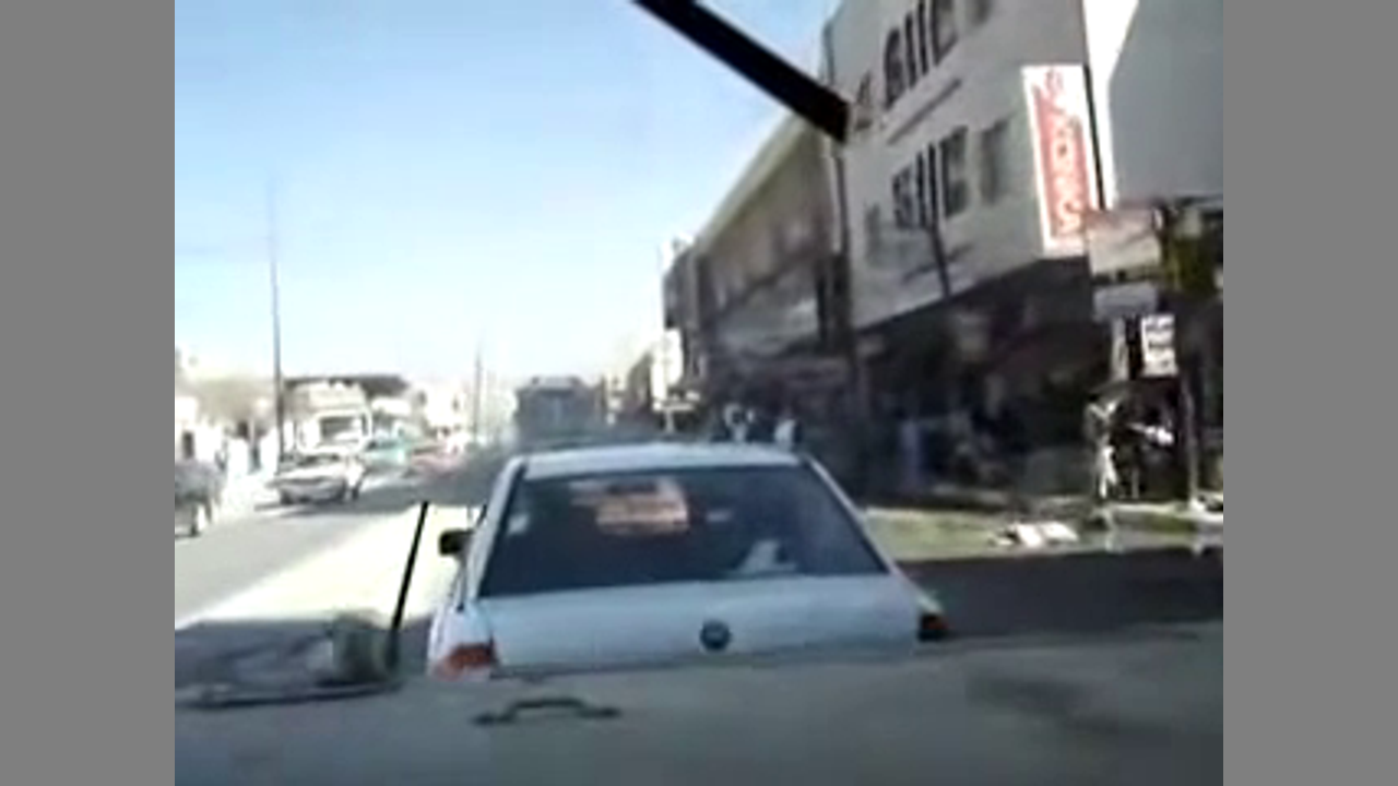 Clearing the road with a Humvee in Iraq .