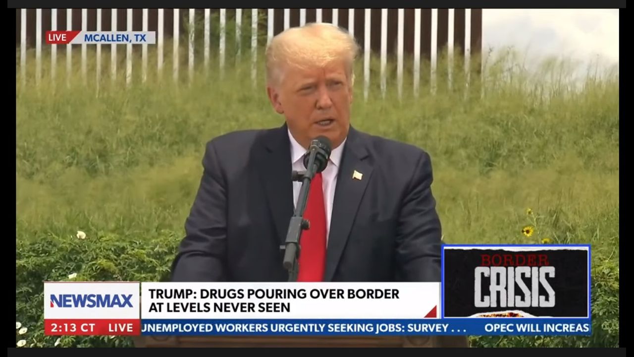 AT THE BORDER: During his address at the U.S.- Mexico border wall in McAllen, Texas, former President Donald Trump shouts out his Republican allies in the House of Representatives who joined him ~ Representatives Ronny Jackson, Lauren Boebert, Madison Cawthorn and more. - via Newsmax's live event coverage
