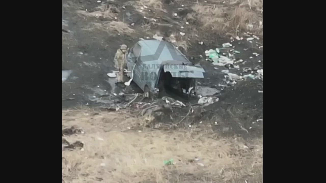 Russian FPV drone trying to hitch a ride in the back of a Ukrainian van