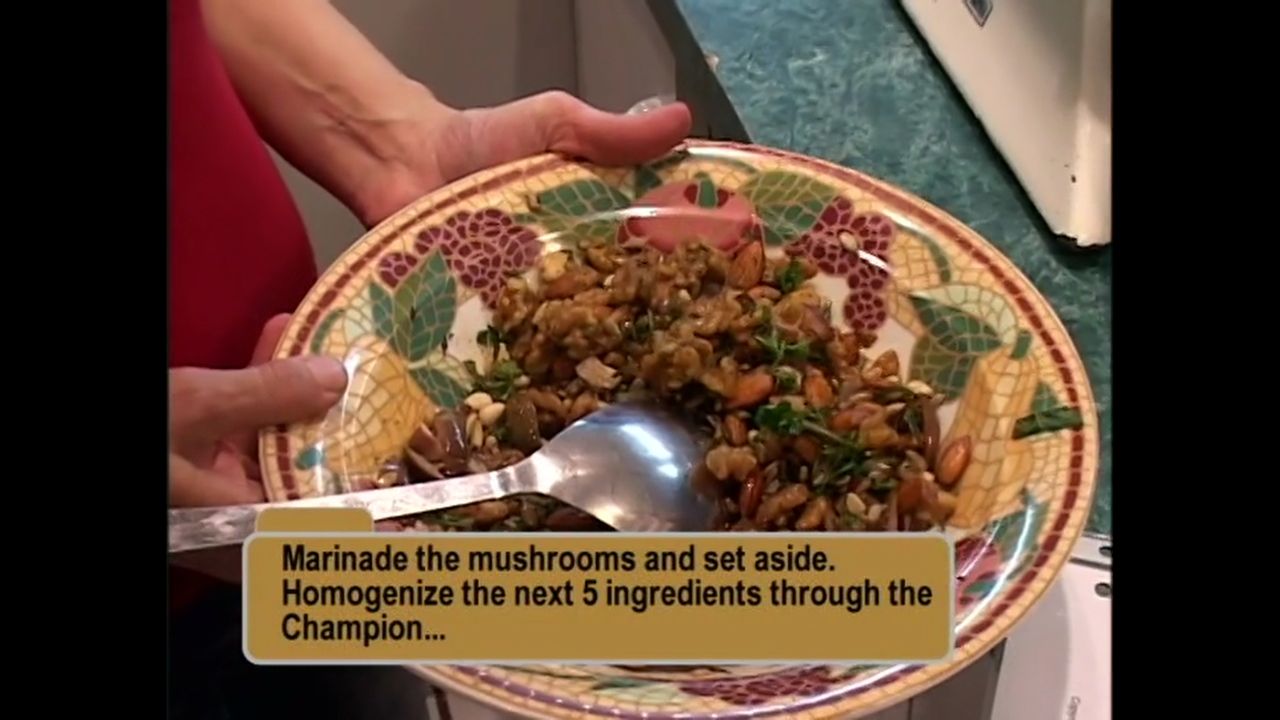 Roberta makes "Neat" loaf in Gary Null's healthy kitchen