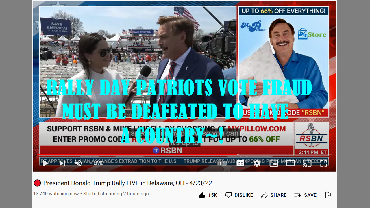 RALLY DAY PATRIOTS VOTE FRAUD MUST BE DEFEATED TO HAVE A COUNTRY~! Hear from My Pillow Guy Mike Lindell as he recounts his efforts to stop the vote fraud. https://www.youtube.com/watch?v=zC9LSf47Fv4