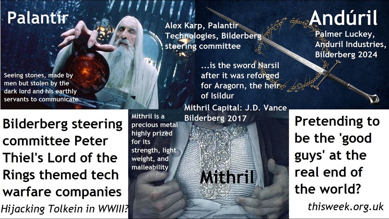 – JRR Tolkein's Lord of the Rings themed Peter Thiel tech-war companies, Palantir Anduril, Mithril betray elite's fear of people understanding the Bibical end of the world and Book of Revelation