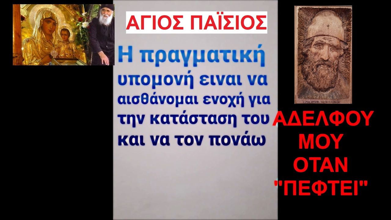 Η ΠΡΑΓΜΑΤΙΚΗ ΥΠΟΜΟΝΗ ΕΙΝΑΙ ΝΑ ΑΙΣΘΑΝΟΜΑΙ ΕΝΟΧΗ ΓΙΑ ΤΗΝ ΚΑΤΑΣΤΑΣΗ ΤΟΥ ΑΔΕΛΦΟΥ ΜΟΥ ΟΤΑΝ "ΠΕΦΤΕΙ" ΚΑΙ ΝΑ ΤΟΝ ΠΟΝΑΩ (ΑΓΙΟΣ ΠΑΪΣΙΟΣ). ΓΙΑΤΙ ΩΣ ΕΚΚΛΗΣΙΑ ΘΕΛΟΥΜΕ ΝΑ ΕΙΜΑΣΤΕ ΤΟ ΕΝΩΜΕΝΟ ΣΩΜΑ ΧΡΙΣΤΟΥ https://ugetube.com/watch/z3ylWKaPgZqGXe6 , https://rumble.com/v1d8aw1-christ-is-love.html . ΠΗΓΗ: Ηρώ Κωνσταντοπούλου https://youtu.be/MmVQjZ5FtGc .