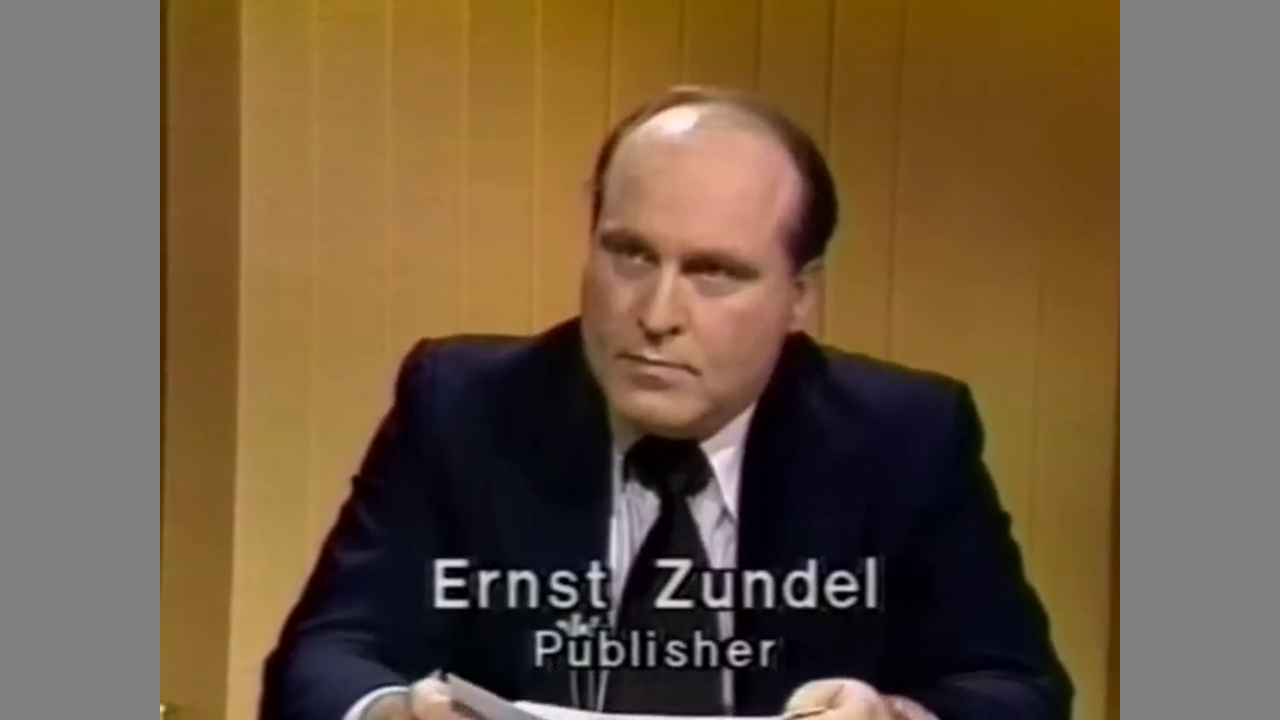 Ernst Zundel's first recorded TV appearance. It was at the end of this program that he found out that he was being charged and there was going to be a trial.