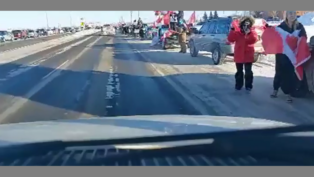 Canada Winnipeg Manitoba Jan 25th Freedom Convoy 2022 Thousands Protesting COVID Vaccine Mandates