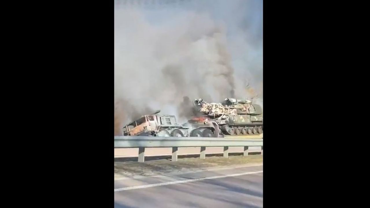 Burnt Ukrainian Equipment Column - Just Hit - 022522.