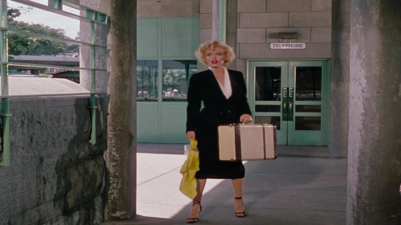 Believing she’s home free, Rose arrives at that footpath only to discover the would-be victim of her scheming. Informed about this footpath, George knew this was Rose’s only means of escape, and thus he was waiting for her. With horror splashed across her face, this hot blond knew that her husband would not be kind to her. Making a run for it, Rose enters a bell tower with her husband and hot pursuit. Thinking she might be better off in the hands of the police, Rose attempts to call them on a payphone.