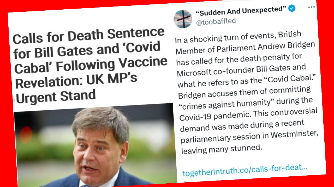 In a shocking turn of events, British Member of Parliament Andrew Bridgen has called for the death penalty for Microsoft co-founder Bill Gates and what he refers to as the “Covid Cabal.” Bridgen accuses them of committing “crimes against humanity” during the Covid-19 pandemic. This controversial demand was made during a recent parliamentary session in Westminster, leaving many stunned.