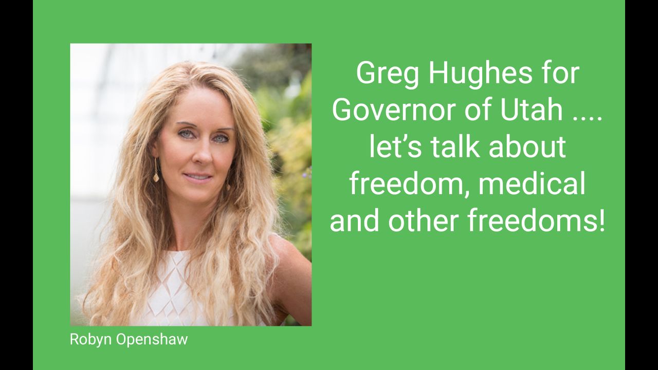 Utahns! Here's what Governor candidate Greg Hughes told me about how he'll protect our medical and economic freedom. You MUST register by Friday, June 19th, as a Republican at https://utah.gov/index.html Your vote counts, because Hughes is #2 right now--and in #1 spot is Cox, who told the health departments to go shut everyone down, and cost Utah 15% of its jobs--so far. Greg Hughes https://greghughes.com/about/ Learn more here: https://takeactionforfreedom.com/ Join our Facebook Group: https://facebook.com/groups/idonotconsent
