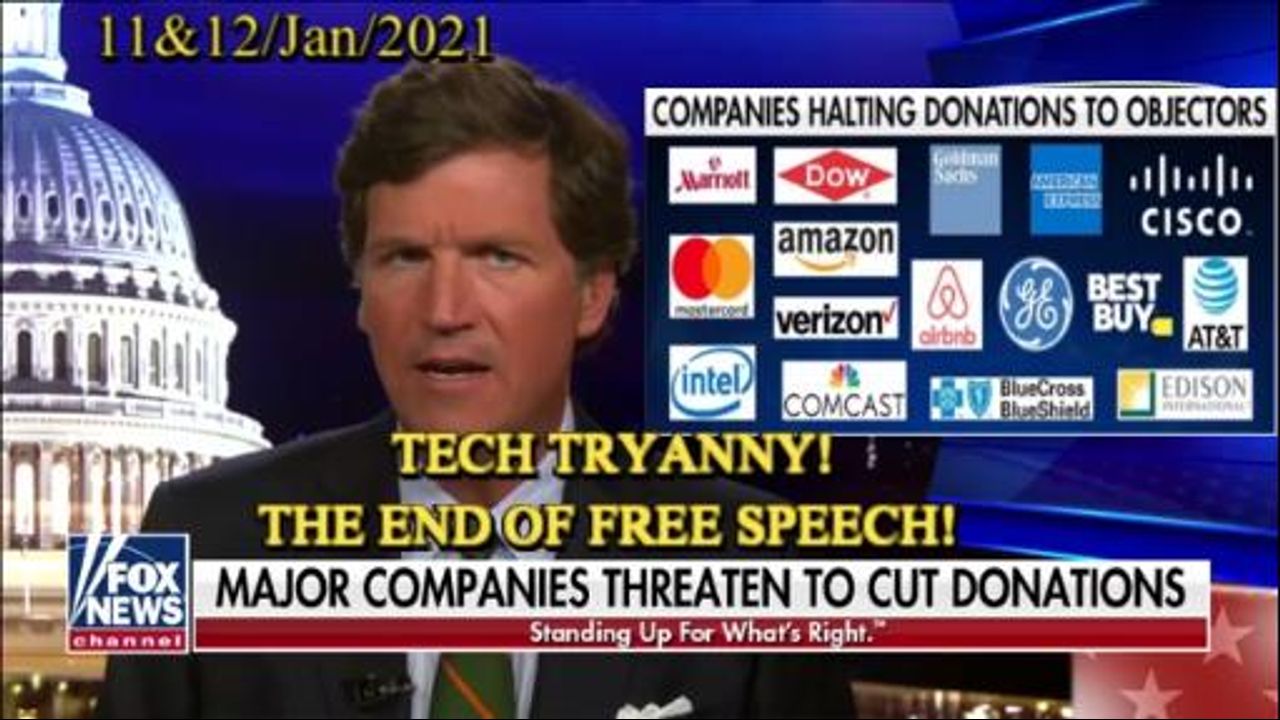 ** TECH TRYANNY! - THE END OF FREE SPEECH! ** The Crackdown Begins - Tucker Carlson – 11/Jan & 12/Jan/2021