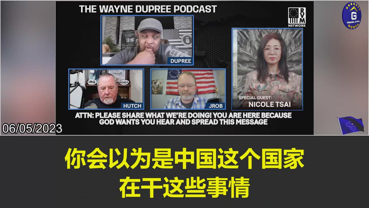 6/5/2023 【妮可做客韦恩·杜普里秀的节目】韦恩·杜普里:美国的媒体总是把中共所做的一切和中国绑在一起,是新中国联邦让我们知道了中共是中国的奴隶主;妮可:华尔街和硅谷的大科技公司与中共是一伙的,他们想奴役全世界人民,美国需要与中共彻底脱钩,并找出美国政府机构里的卖美贼