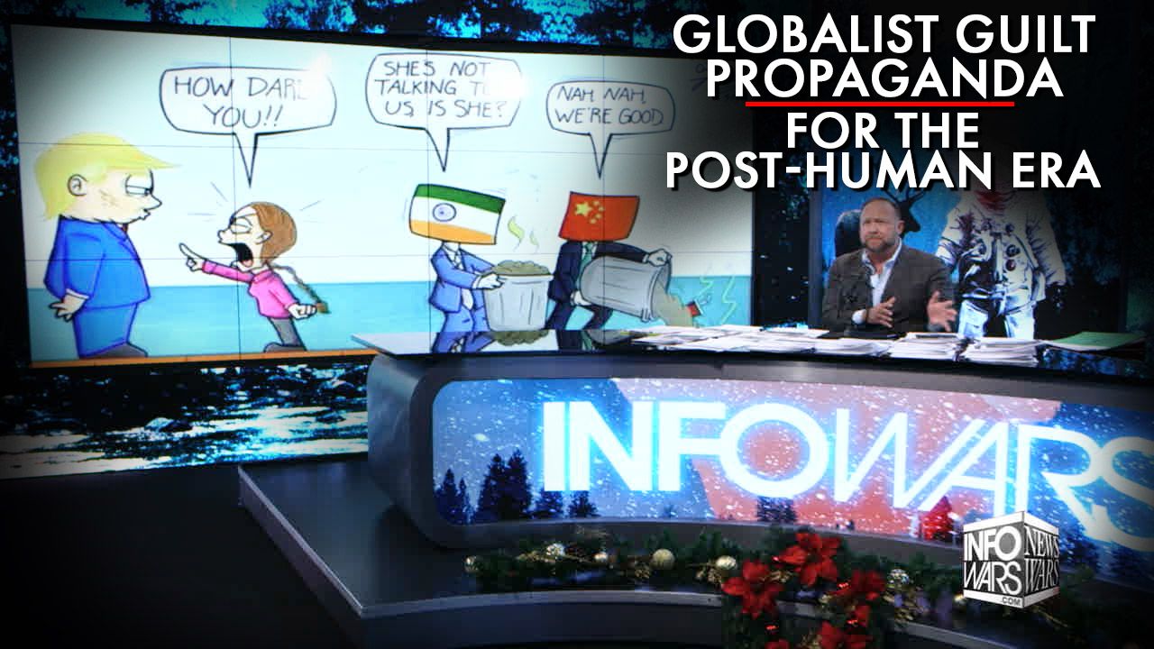 Alex Jones breaks down the campaign to guilt the public into accepting a post-human era of a world controlled by globalists.