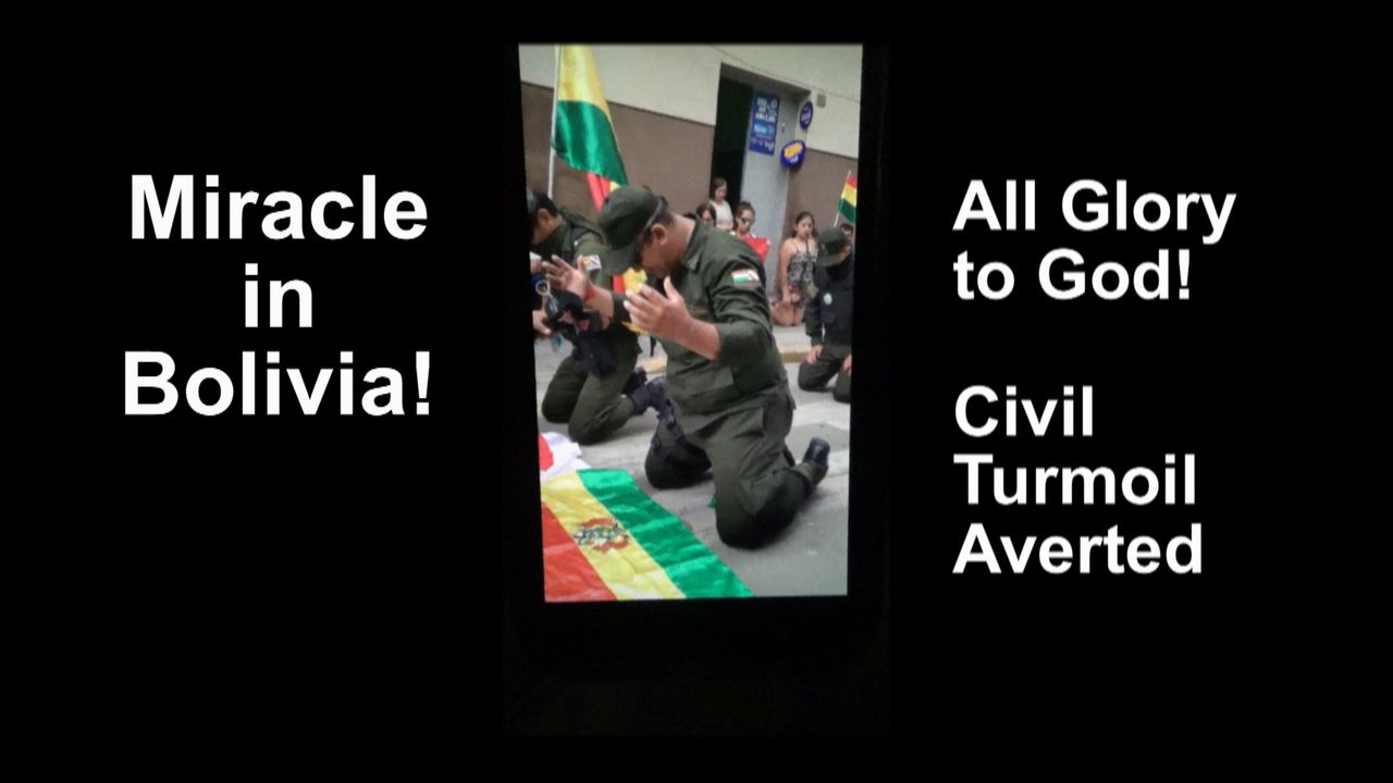 Miracle in Bolivia! Battle Halted! Protesters and Military ready to Battle! Suddenly, the military head kneels in prayer... followed by his military kneeling in prayer... then peace with the protestors! Ignored by secular mainstream media! God conquers Soros in Tarija, Bolivia! (Video courtesy of Aldo Jurado)