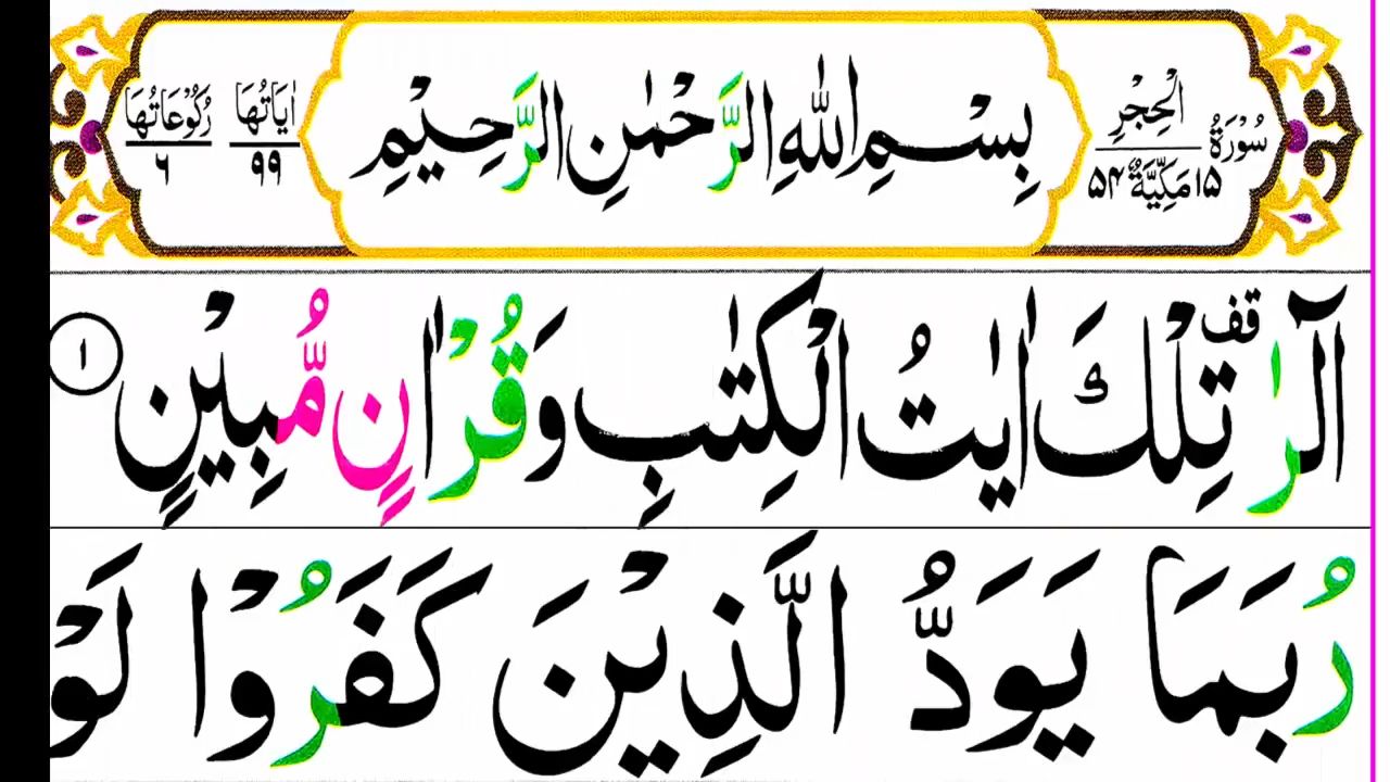 Surah Al Hijr Full [Surah Hijr Recitation with HD Arabic Text