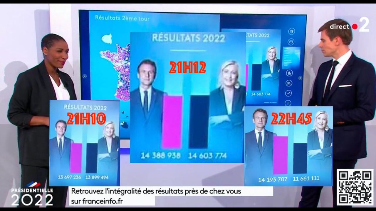 Communiqué officiel France Télévision : « Une erreur informatique nous a amené à afficher brièvement des chiffres erronés lors de cette soirée électorale. A 21h10, le logiciel qui nous permet d'afficher les données du ministère de l'intérieur, hors de cause, a compté les voix de petites communes deux fois, aussi bien pour un candidat que pour l'autre. Cette erreur, constatée immédiatement, a été corrigée en quelques minutes. »