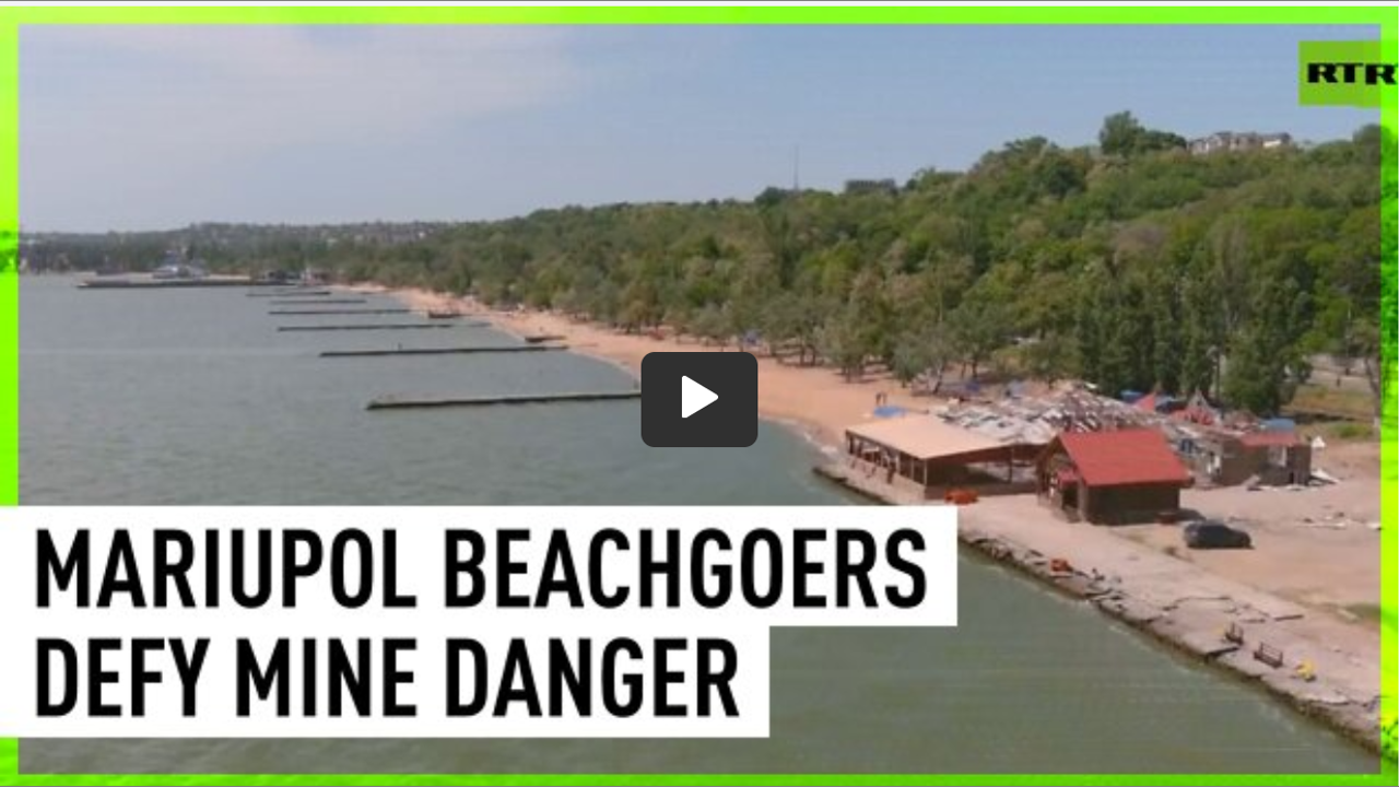 Mariupol beachgoers defy mine danger to swim in sea
