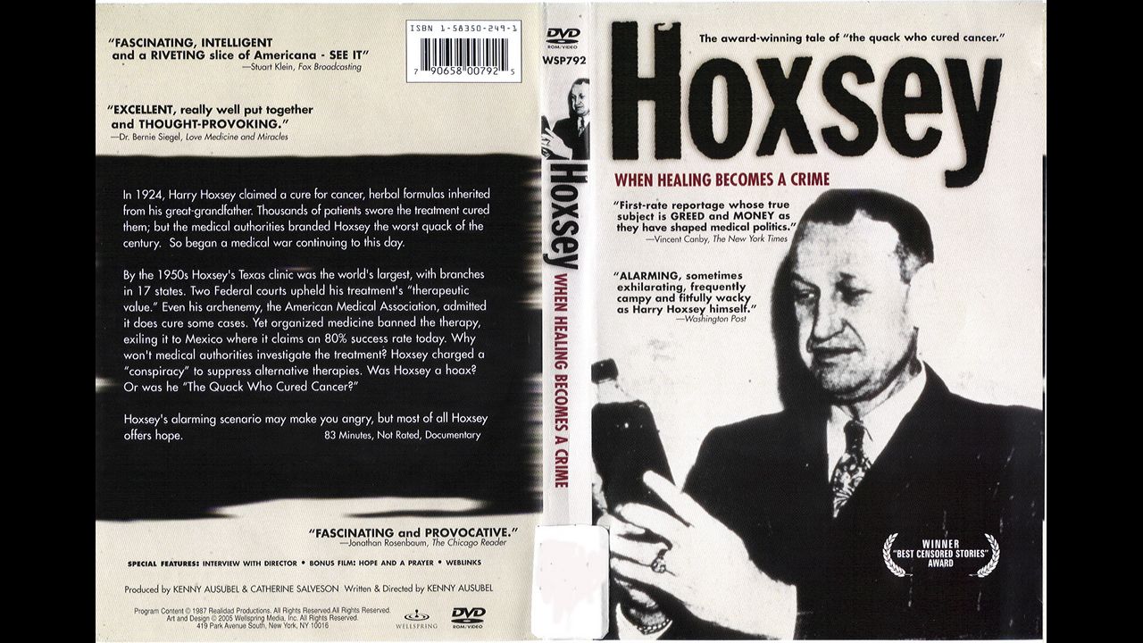 Why won't medical authorities investigate the treatment? Hoxsey charged a "conspiracy" to suppress alternative therapies. Was Hoxsey a hoax? Or was he "The Quack Who Cured Cancer"? Hoxsey's alarming scenario may make you angry, but most of all HOXSEY offers hope.