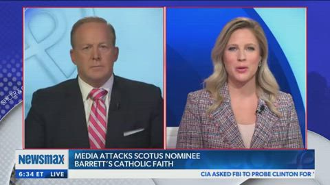Political commentator Trish Regan reacts to jokes, comments, and other media remarks made regarding Trump's Supreme Court nominee Amy Coney Barrett, and what they say about political discourse and coverage among Democrats and Republicans, and people of faith. - with Newsmax TV's Sean Spicer and Lyndsay Keith