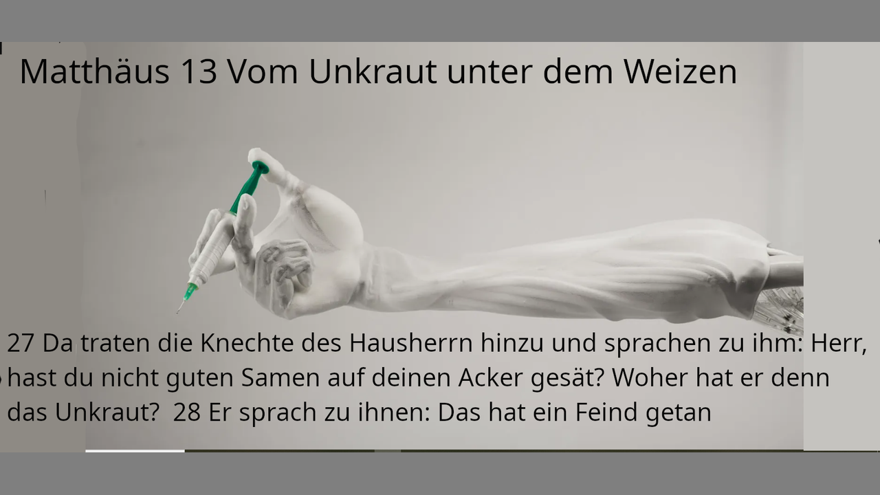 Matthäus 13 Woher hat er denn das Unkraut? 28 Er sprach zu ihnen: Das hat ein Feind getan.