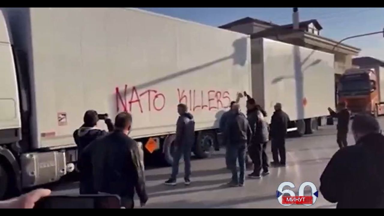 Greeks from the city of Tyrnavos block trucks with ammunition for Ukraine. Six of the trucks carrying missiles forced to turn back by members of Communist Party of Greece.