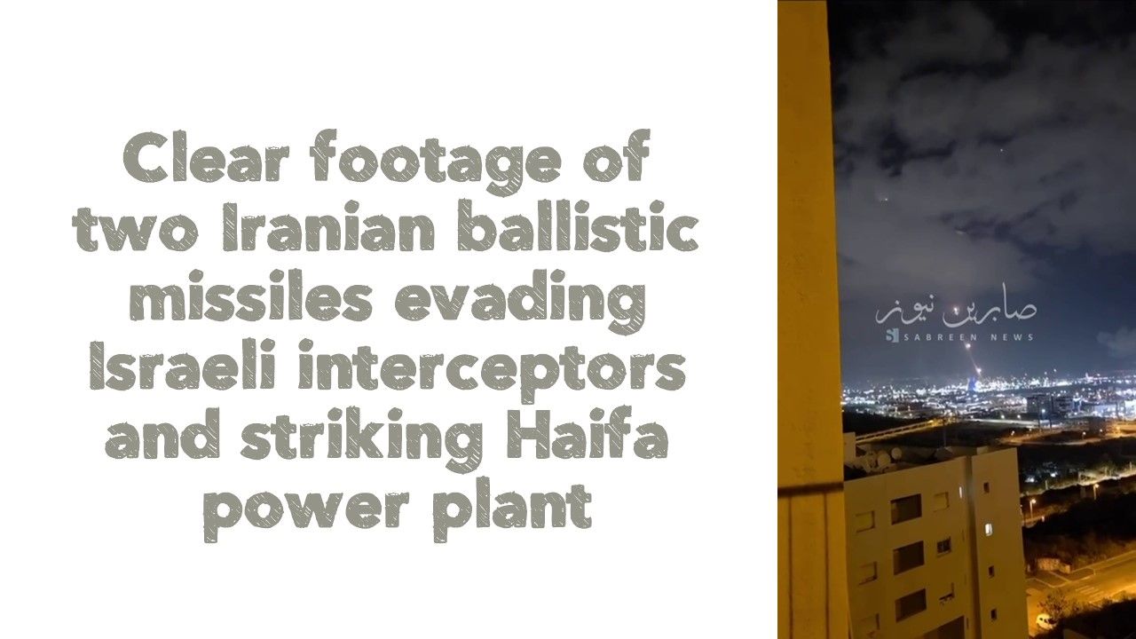 🇮🇱/🇮🇷 WATCH: Clear footage of two Iranian ballistic missiles evading Israeli interceptors and striking Haifa power plant.