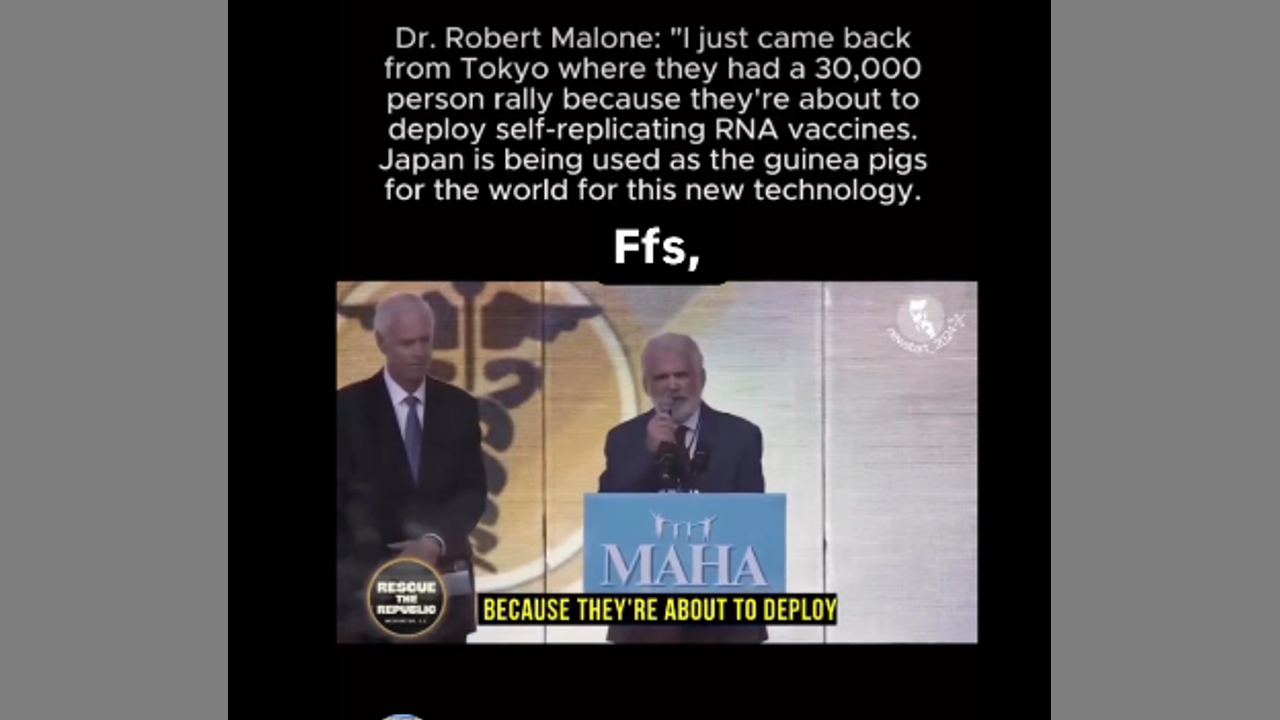 Dr Robert Malone has just come back from Tokyo where they had a 30,000-person rally because they're about to destroy self-replicating RNA vaccines