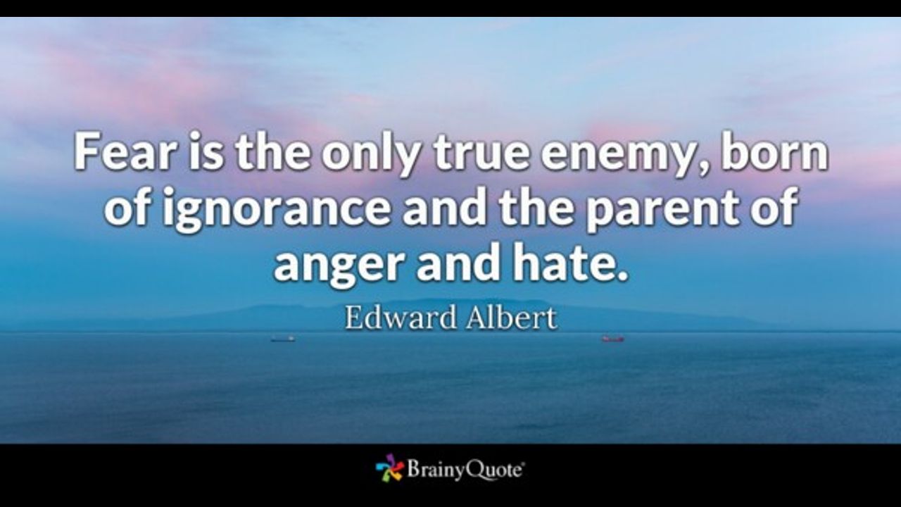 QUOTE ,, Fear is the only true enemy, born of ignorance and the parent of anger and hate. Edward Albert