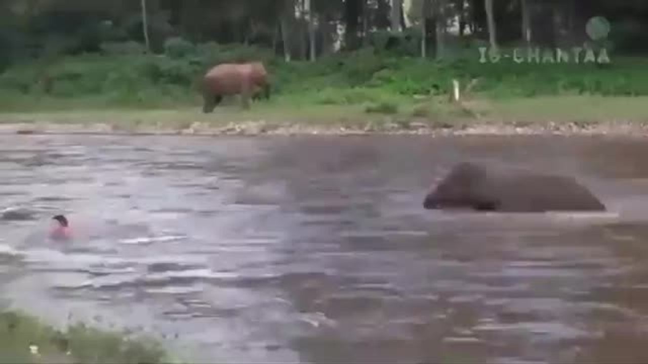 Wild Elephant Saves Man Being Swept Away By Powerful River
